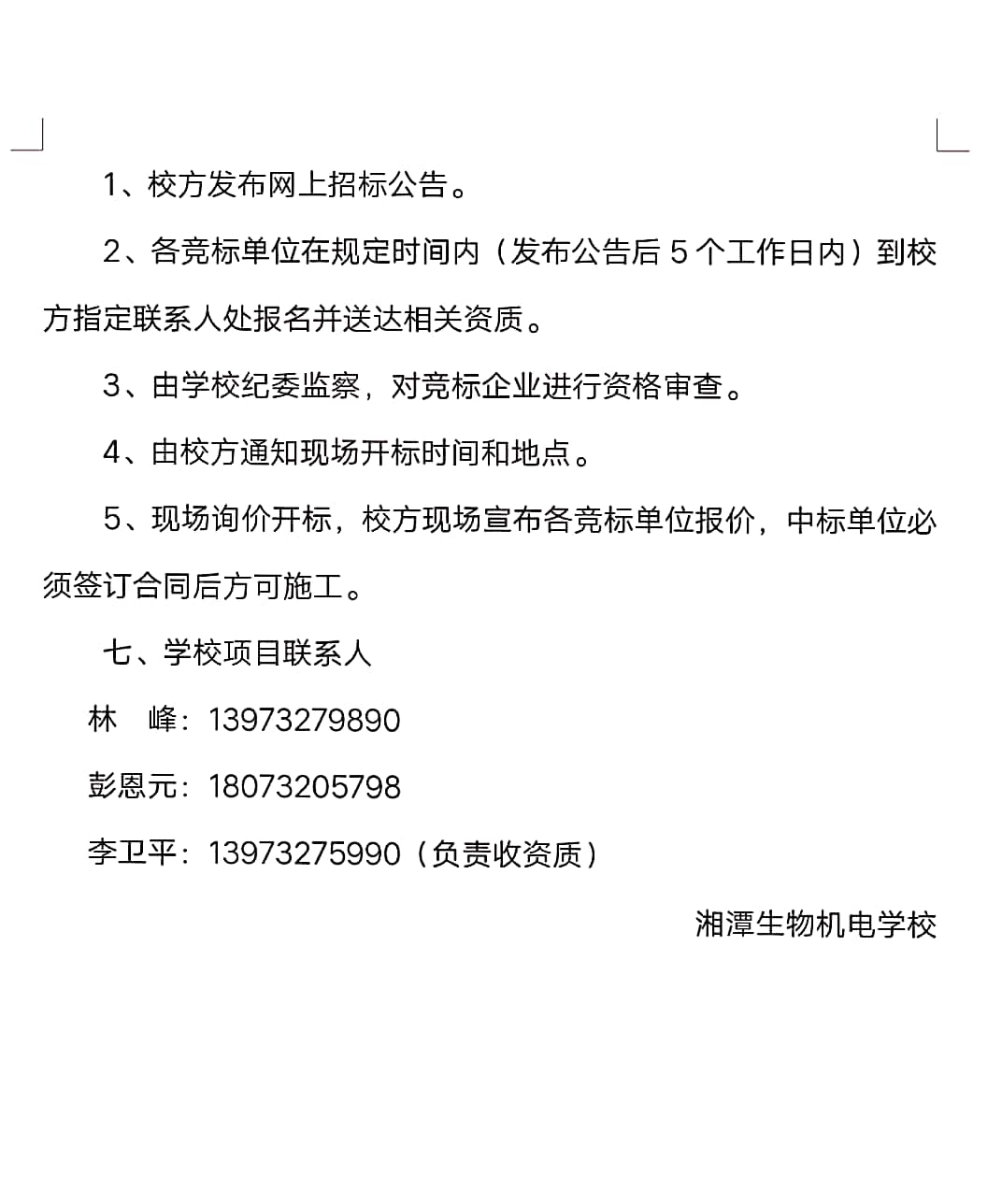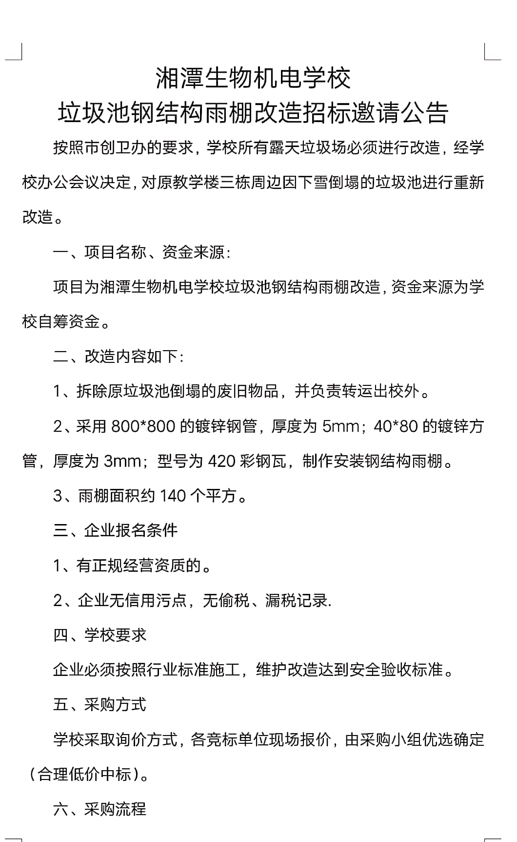 湘潭生物机电学校 垃圾池钢结构雨棚改造招标邀请公告 - 通知公告 - 湘潭生物机电学校