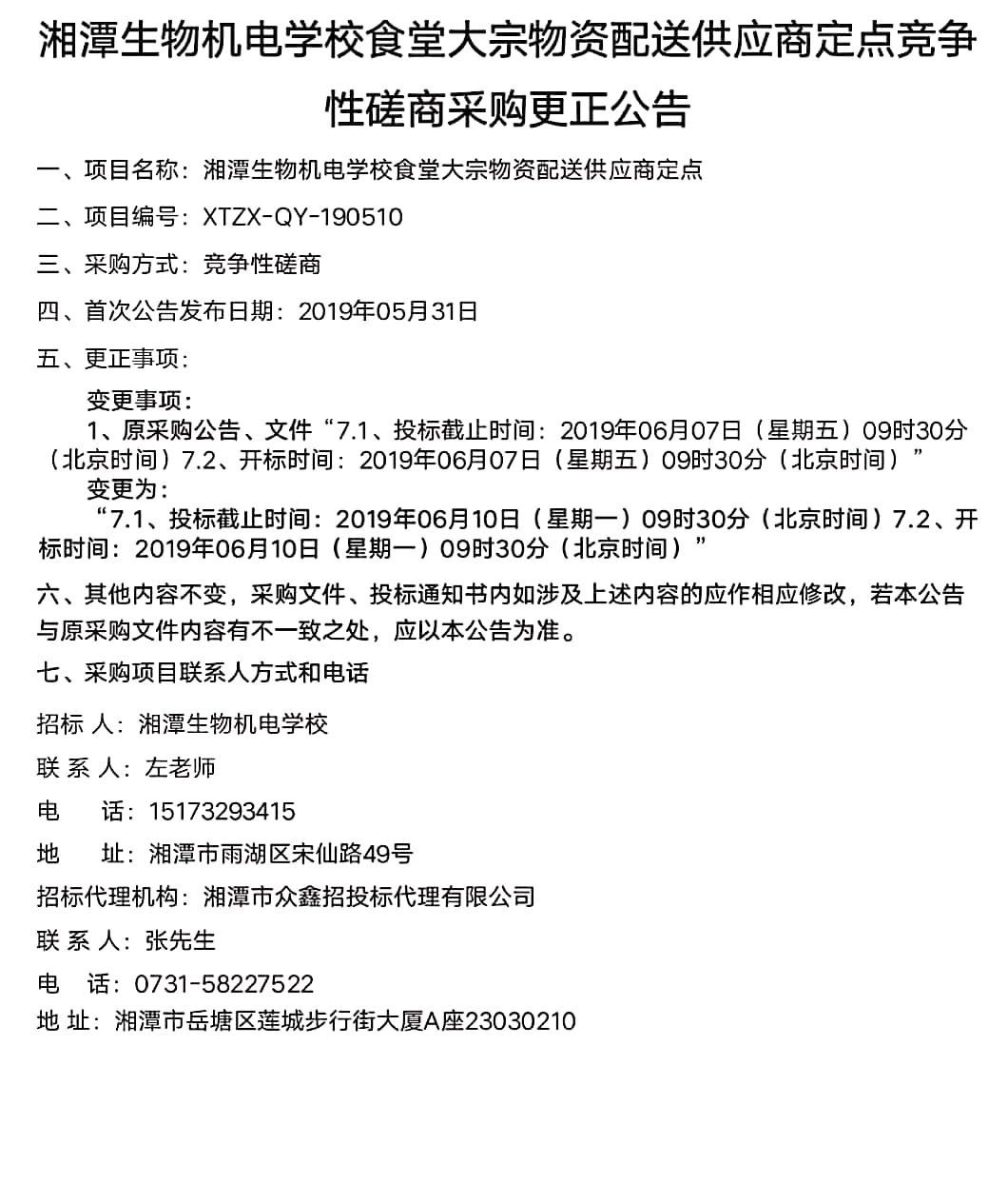 湘潭生物机电学校食堂大宗物资配送供应商定点竞争性磋商采购更正公告 - 通知公告 - 湘潭生物机电学校