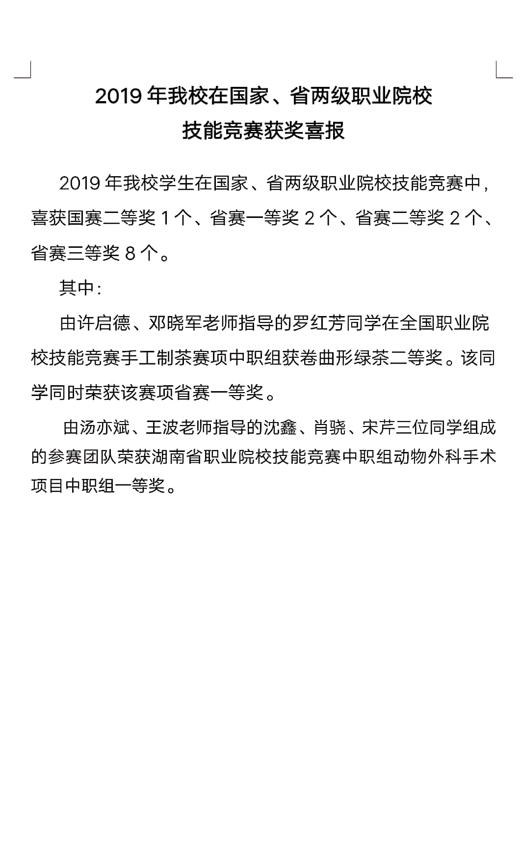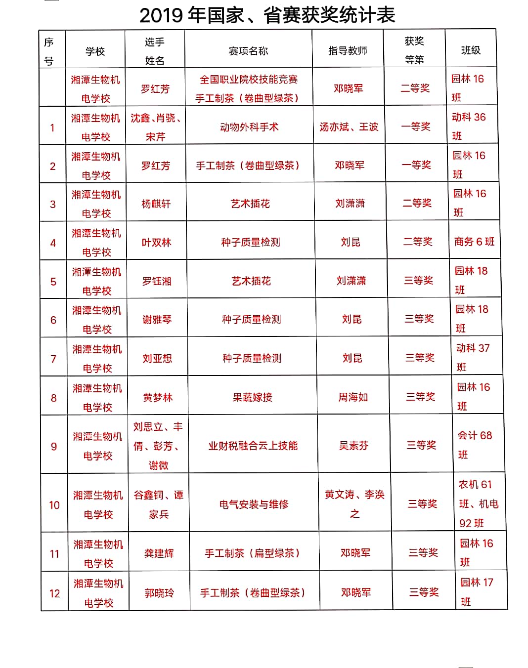 2019年湘潭生物机电学校参加国家、省两级职业院校技能竞赛获奖喜报 - 教学科研 - 湘潭生物机电学校