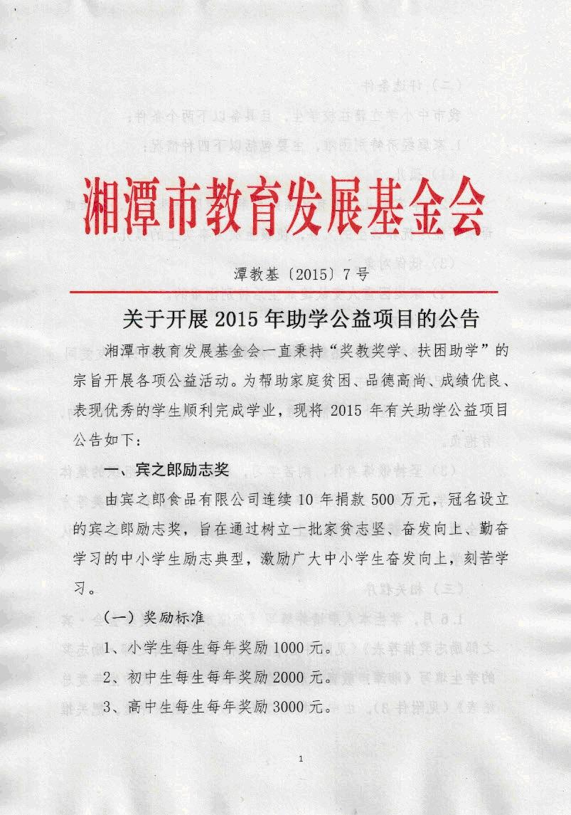 关于开展2015年助学公益项目的公告 - 德育管理 - 湘潭生物机电学校