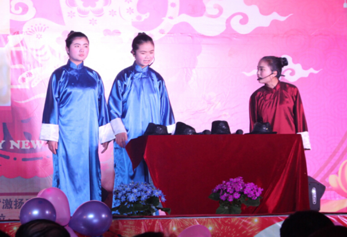 本次晚会在热闹、喜庆的开场舞《欢聚一堂》中拉开了帷幕。随后,舞蹈、小品、歌曲、话剧、诗歌朗诵、三句半等总共16个精彩的节目依次呈现,这些节目都是由学校师生们自编自导自演。为了增强晚会的互动性、活跃现场气氛,在节目表演间隙还穿插了幸运观众抽奖环节,市教育局领导、校企合作单位、家长代表分别在抽奖环节中上台和观众进行了互动。整场晚会精彩不断,高潮迭起,赢得台下阵阵掌声,欢呼声一浪高过一浪。最后,歌曲《人间第一情》为本场晚会划上了圆满的句号。