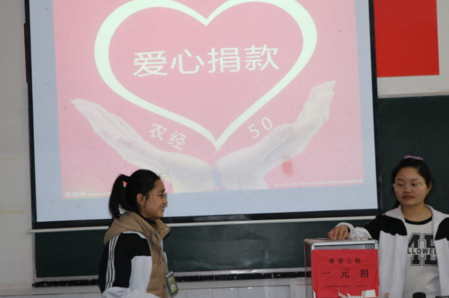 (二)3月29日下午组织全校开展了"希望工程一元捐"公益助学活动。鼓励同学捐出自己的“爱心红包”,来帮助有困难的同学。全校一共募得爱心款1849元。