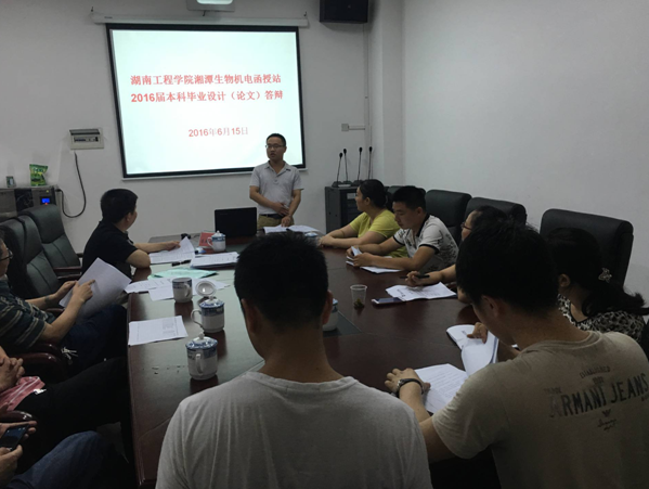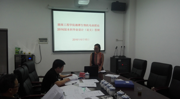 2016年6月15日,湖南工程学院湘潭生物机电学校函授站举行了2016届本科毕业论文答辩,本次共有15名本科毕业生参加毕业论文答辩,学生论文在指导老师指导下,经过选题、三稿修改、论文评阅等多个环节,至2016年5月底完成写作,进入答辩程序,经过答辩小组的精心组织和认真细致的工作,答辩各环节顺利完成。