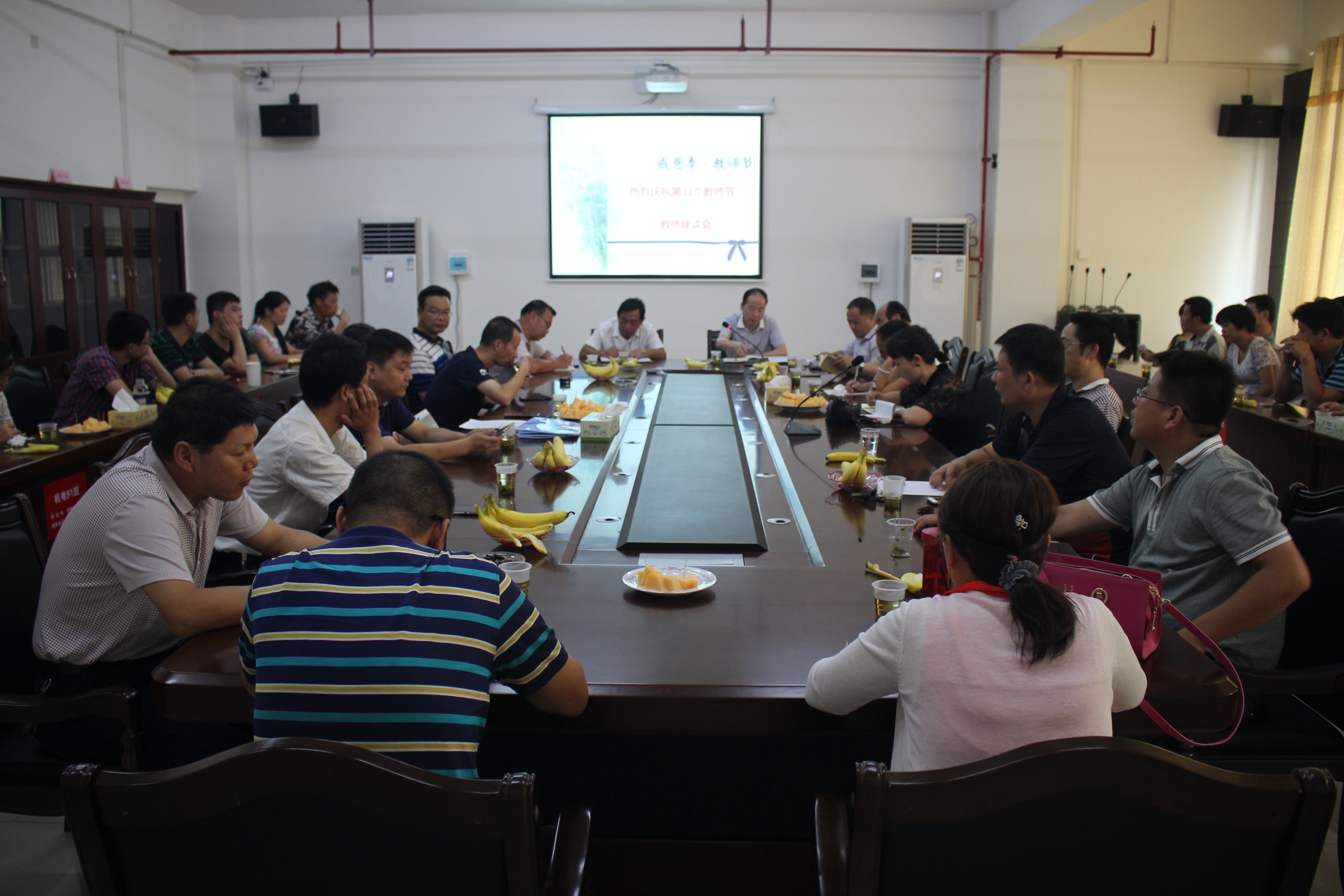 九月的秋风,送来阵阵清爽;九月的校园,洋溢着温馨而感人的气氛。在第32个教师节来临之际,9月7日我校在208会议室举行2016年教师节座谈会。校领导、科级干部与部分教师代表一同欢庆即将到来的教师节。座谈会由书记郭春凯主持。