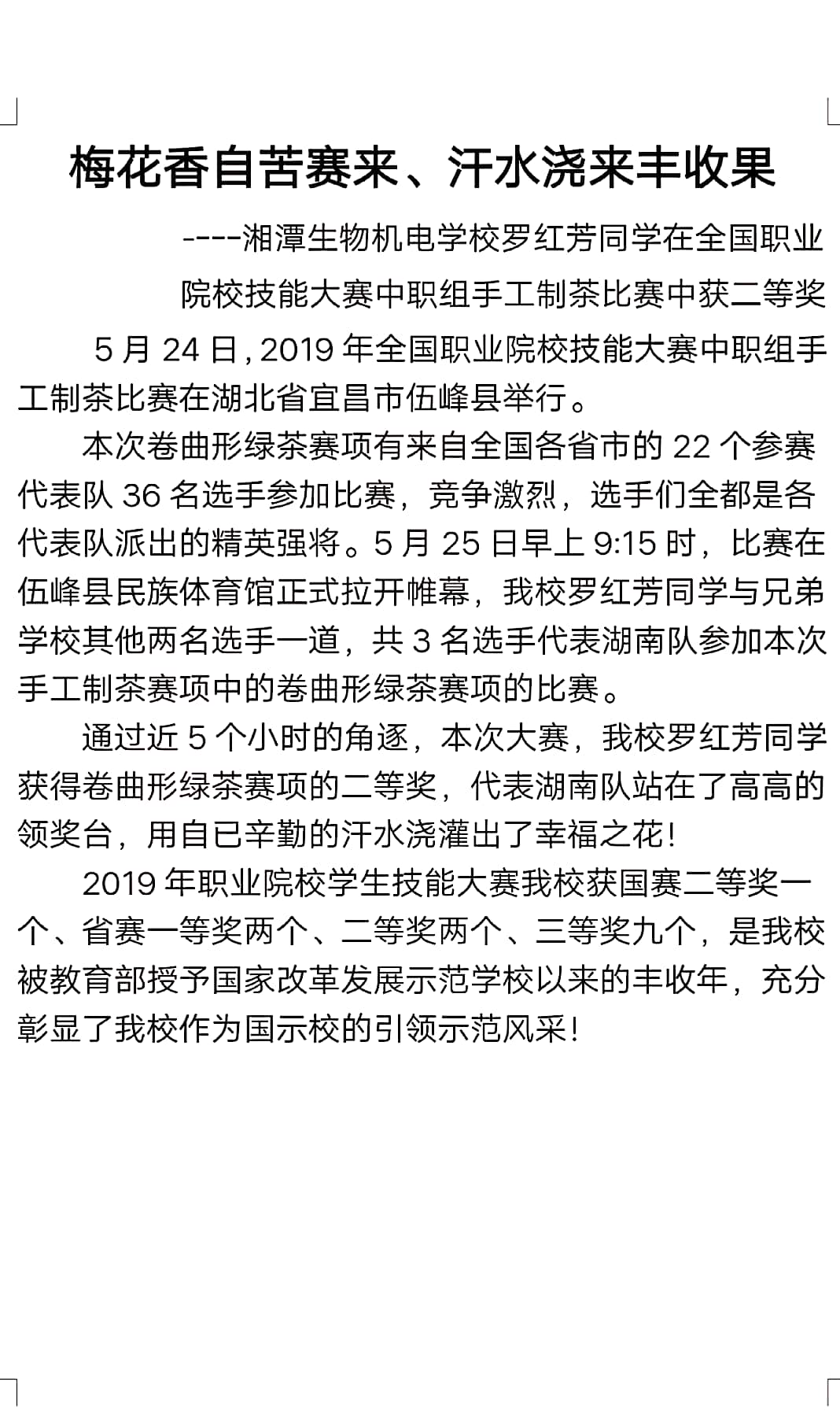 梅花香自苦赛来、汗水浇来丰收果 - 校园动态 - 湘潭生物机电学校