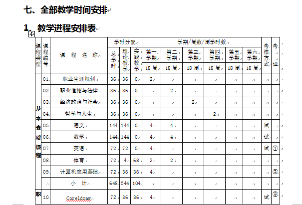 | 职业道德与法律 | 36 | 36 | 36 | 2 | 考查 | 0 | ||