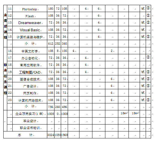 | Photoshop | 180 | 72 | 36 | 36 | 4 | 考试 | 考证 | 108 |